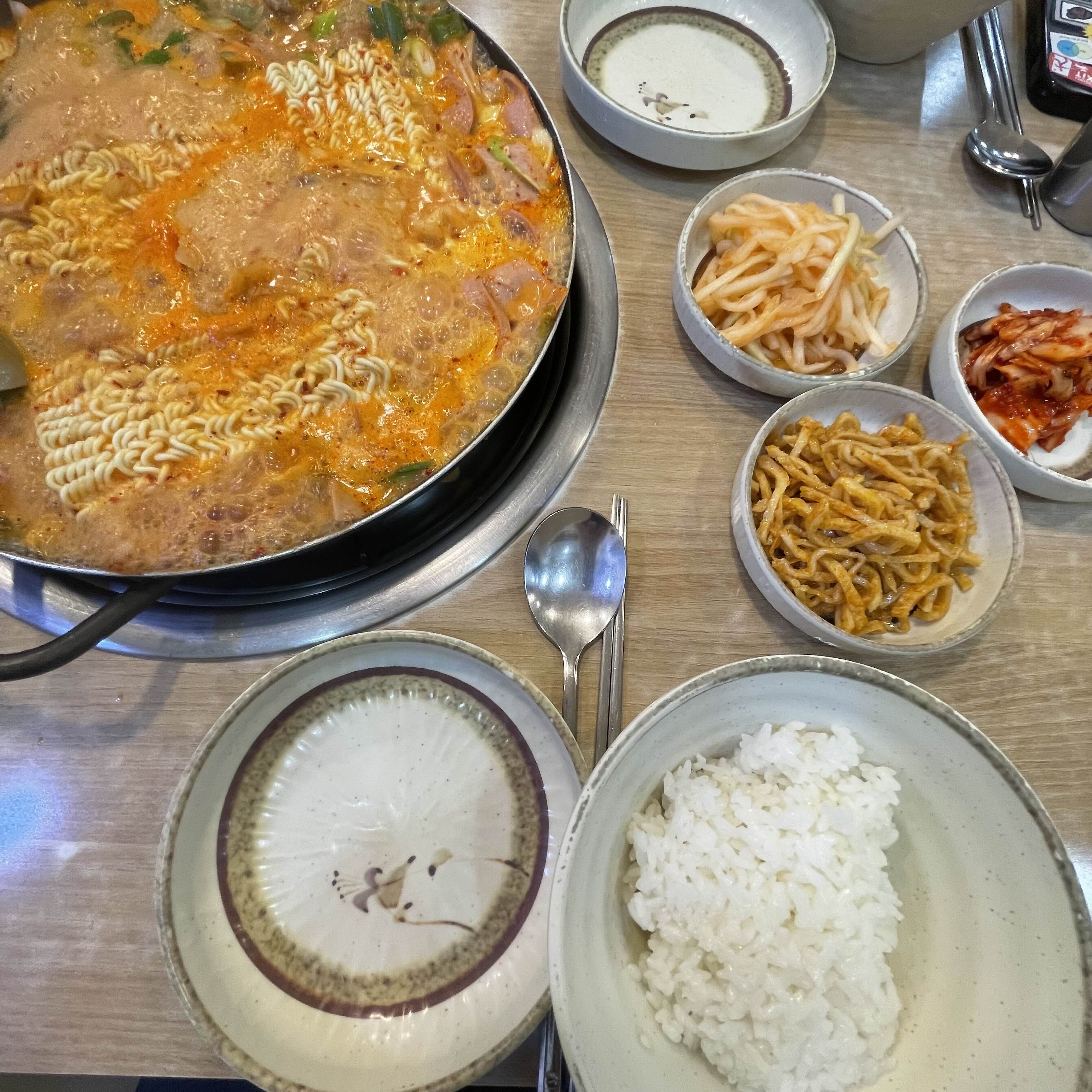 햄 양파 파 당면 라면 등등 들어가 있어요.